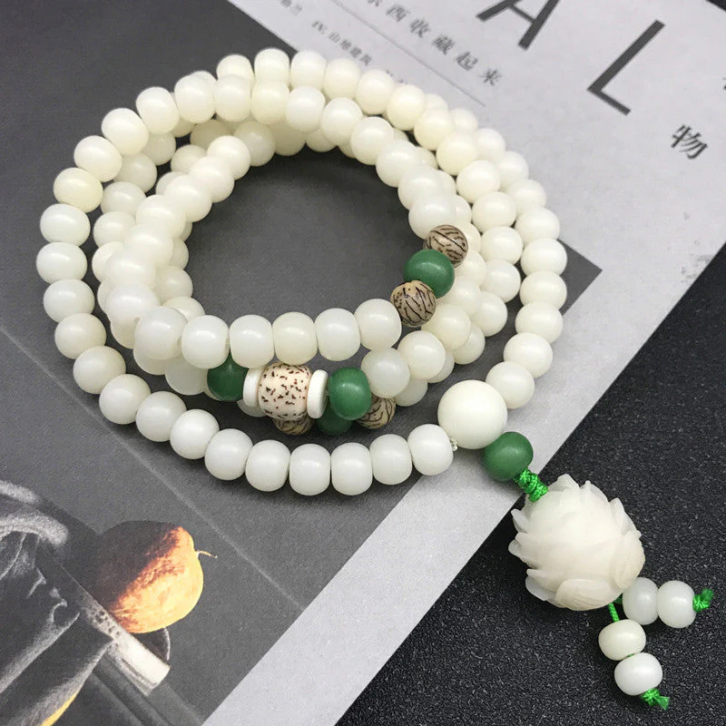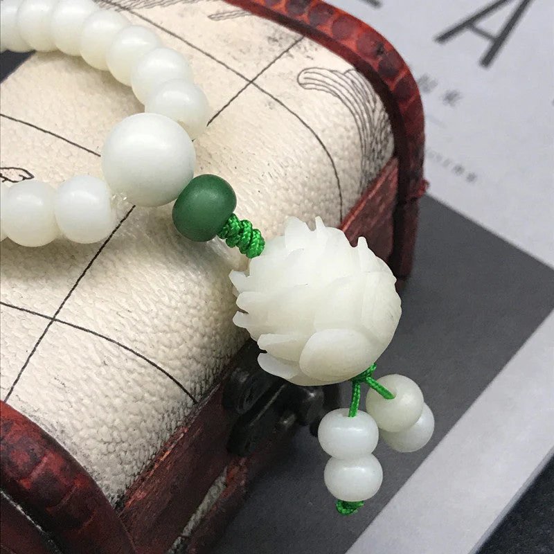 Improve your focus while meditating with the help of this Bodhi Lotus Flower Beads Bracelet! In Sanskrit, the term Bodhi means awakened or enlightened. Each bead in this mala bracelet is made of seeds from various Bodhi plants considered sacred in Buddhism. The seeds were meticulously polished to the point of resembling white jade, thus the name.