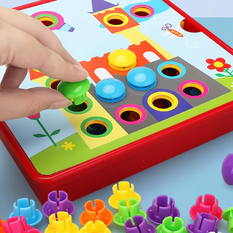 Ontsteek de verbeelding van uw kind met sprankelende, knopachtige pinnetjes die het leren van kleuren en patronen veranderen in een onweerstaanbaar avontuur—terwijl ze kleine handjes en eindeloze creativiteit aanscherpen met 12 spannende themakaarten.