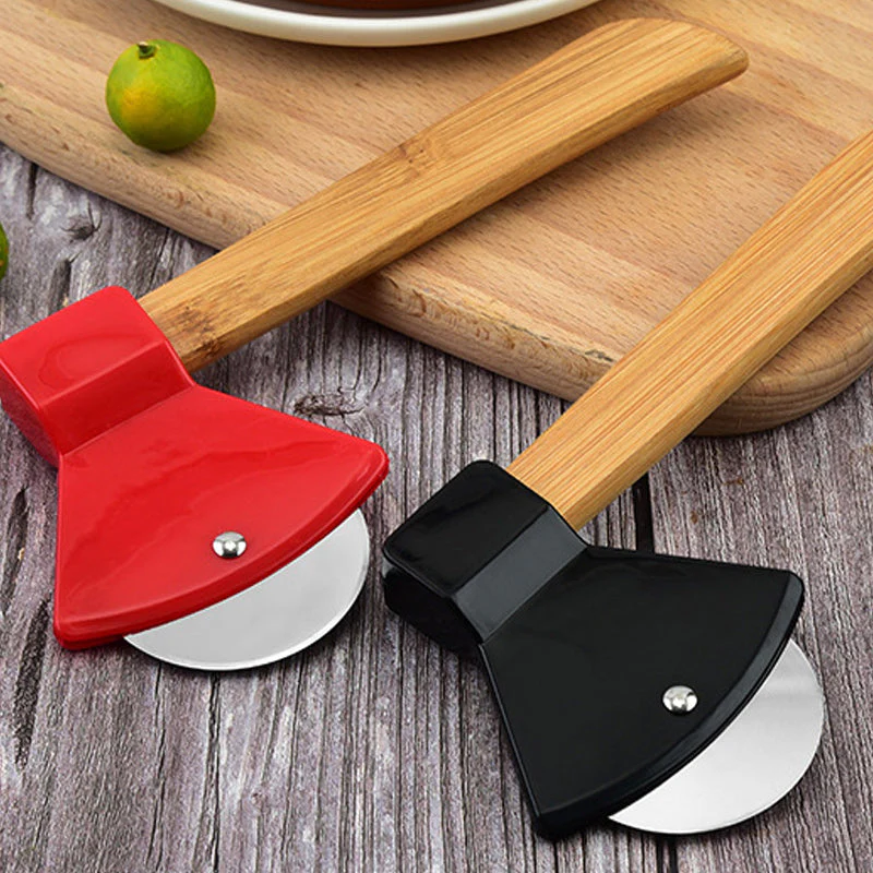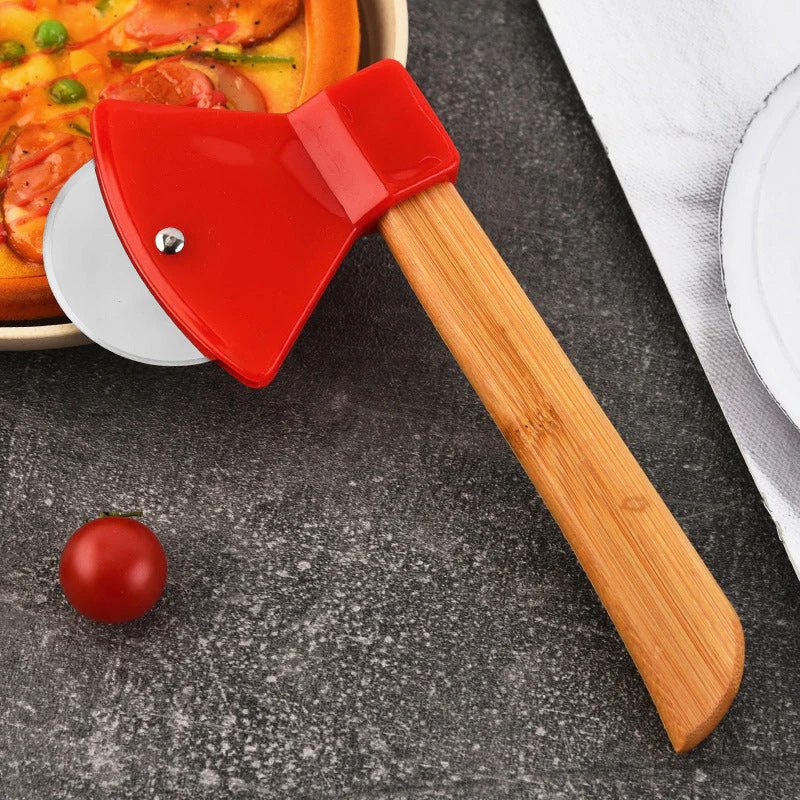 - Uniek bijlvormig ontwerp: met een kenmerkende bijlvorm heeft deze pizzasnijder een roestvrijstalen kop en een natuurlijk houten handvat, wat een vleugje uniekheid toevoegt aan uw keukengereedschap.