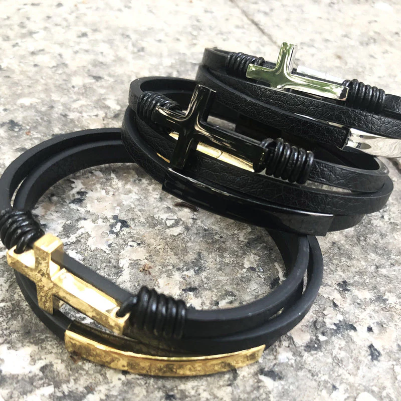 - 1 x kruis gevlochten meerlagige lederen armband