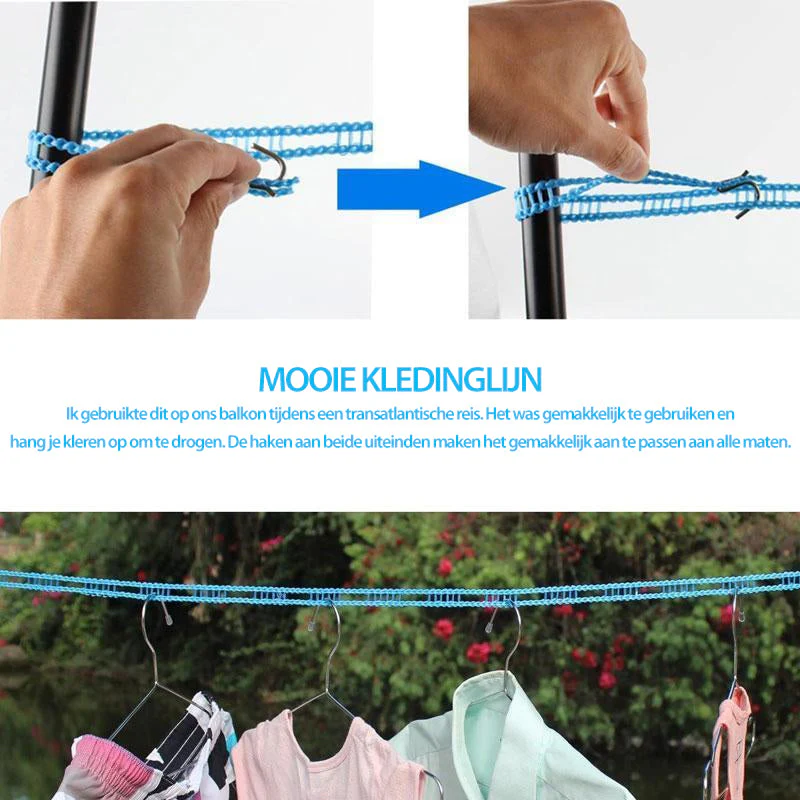 - HOME & OUTDOORS – De waslijn is draagbaar en gemakkelijk op te bergen. Met zijn verstelbare lengte kan hij perfect het probleem van draaien en knopen voorkomen. Het is je beste keuze voor reizen, kamperen in de buitenlucht, boot, maar ook voor huis, slaapzaal, balkon, achtertuin, veranda, badkamer