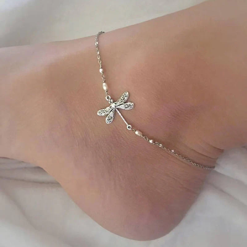 - Upgrade je sieradencollectie met deze Silver Dragonfly Anklets With Pearl!