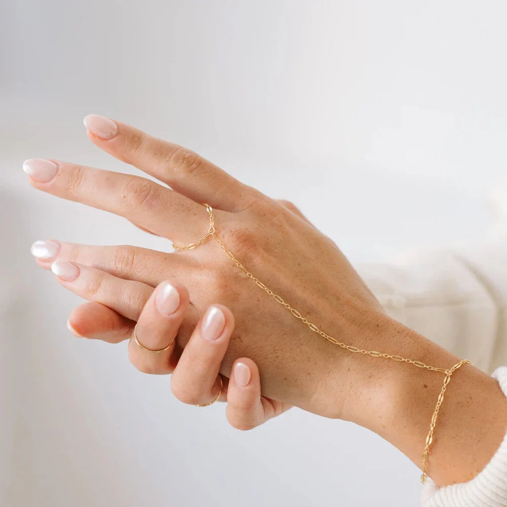 - Voeg wat onverwachte kleur en details toe aan je look met onze Gem Hand Chain. Gemaakt met een sierlijke gouden ketting en edelstenen, dit is het ultieme zomerse laagjesstuk.