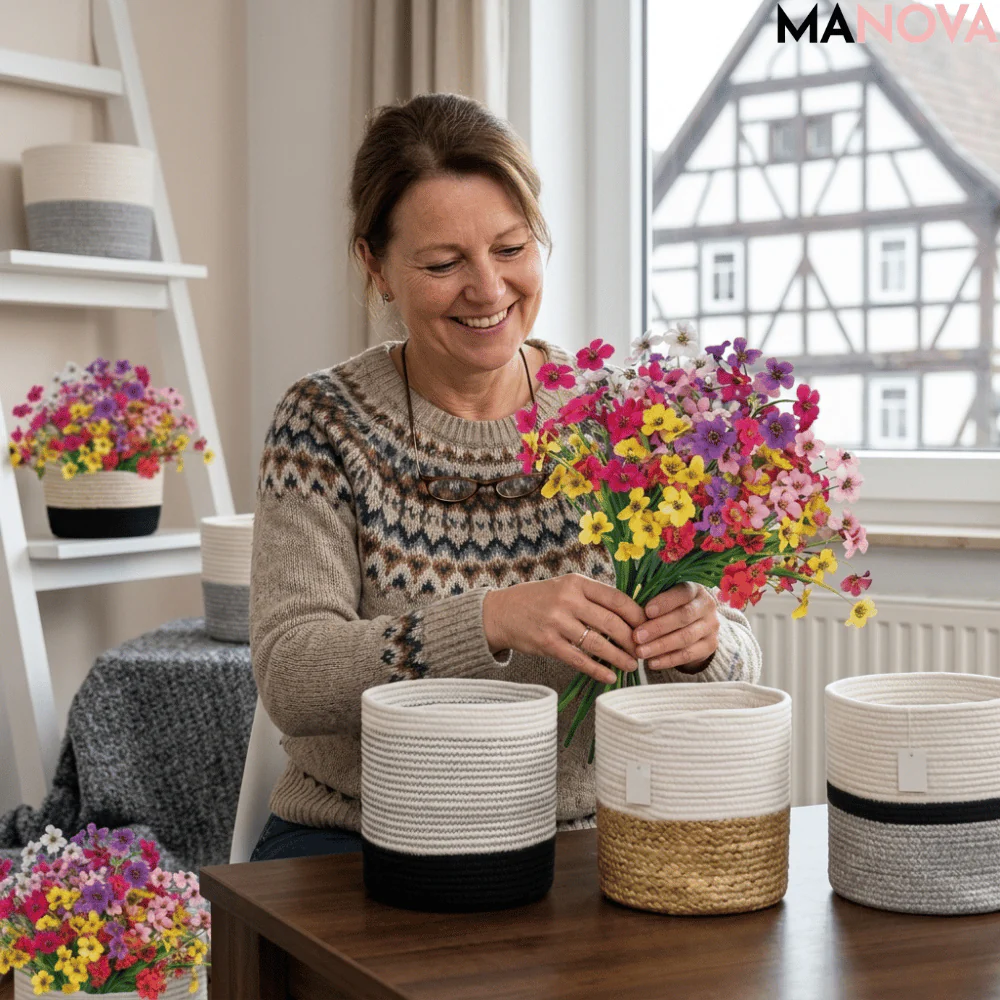 ✔️ Altijd levendig design: Geen verwelking of verkleuring – geniet het hele jaar door van volle, kleurrijke bloemen die hun frisse uitstraling behouden.