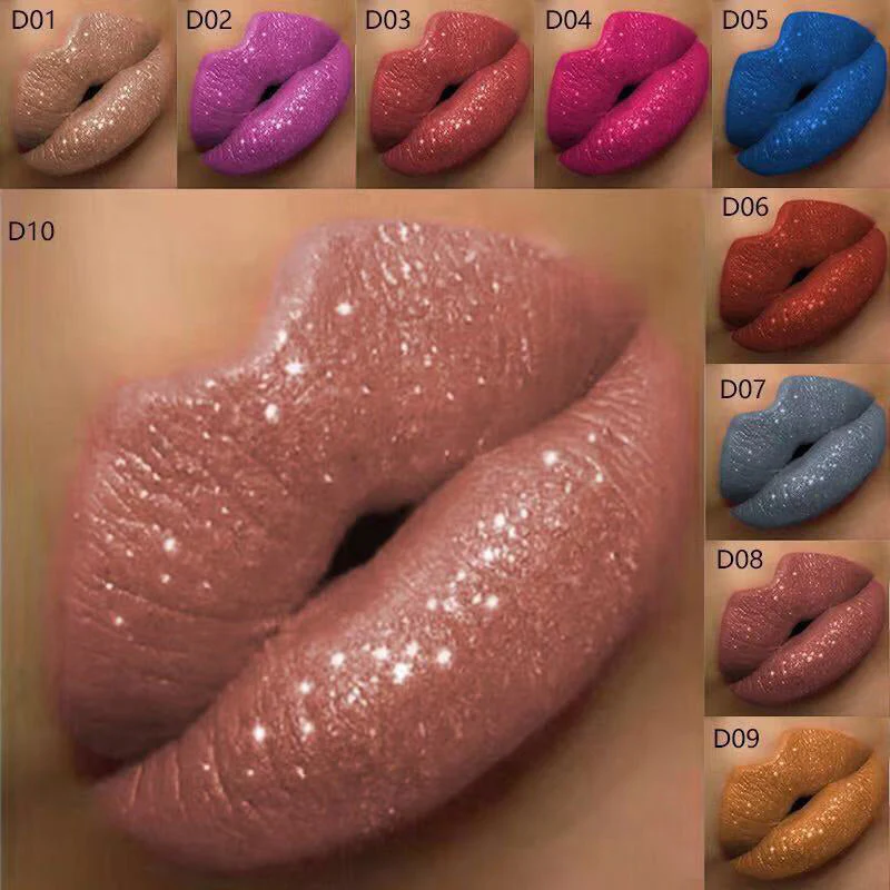 GlitzLip, lichtgewicht formule, langdurig met glitters. Langdurige, waterdichte antiaanbaklaag, verheldert de lipkleur, benadrukt de lipcontouren, maakt de lippen verleidelijk, hoog gepigmenteerd en gemakkelijk te dragen. Gemakkelijk te verwijderen zonder pigmentatie.