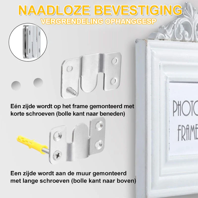 - 【Naadloze montage】 De twee in elkaar grijpende Z-clips voor het ophangen passen perfect om een solide, gestroomlijnde in elkaar grijpende montage te vormen. De dikte is slechts 2 mm / 0,08 inch, wat nauwelijks merkbaar is aan uw muur.