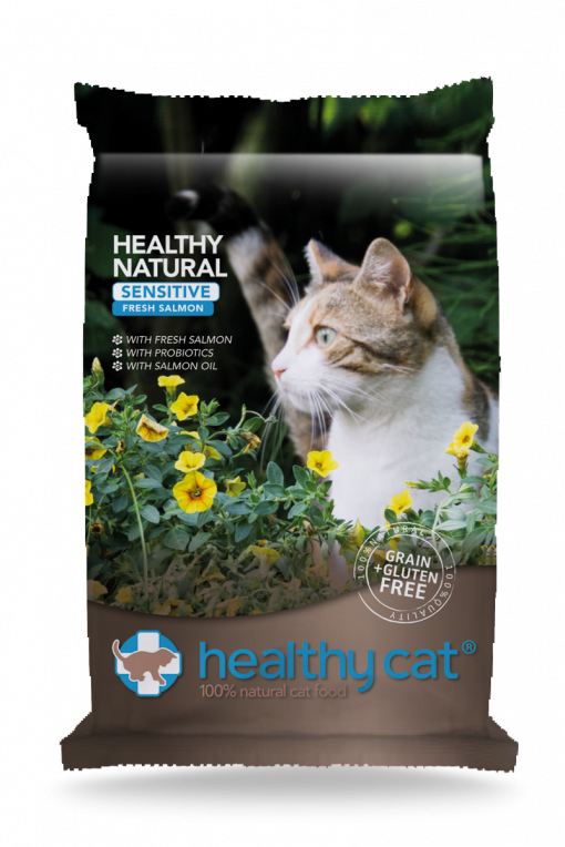 Healthy Cat Sensitive Salmon geeft hem wél de basis die hij verdient: hypoallergeen, granen-, gluten- en aardappelvrij, én met zalm als enige dierlijke eiwitbron.