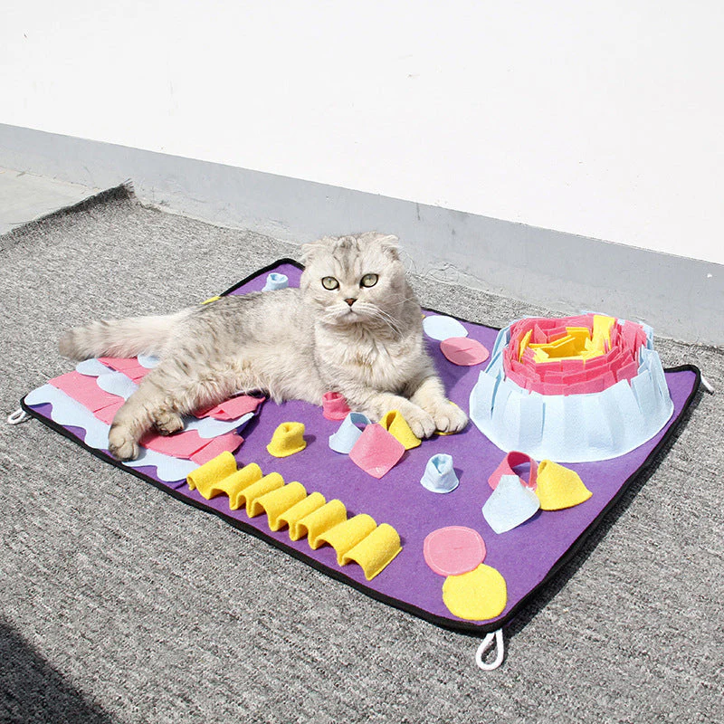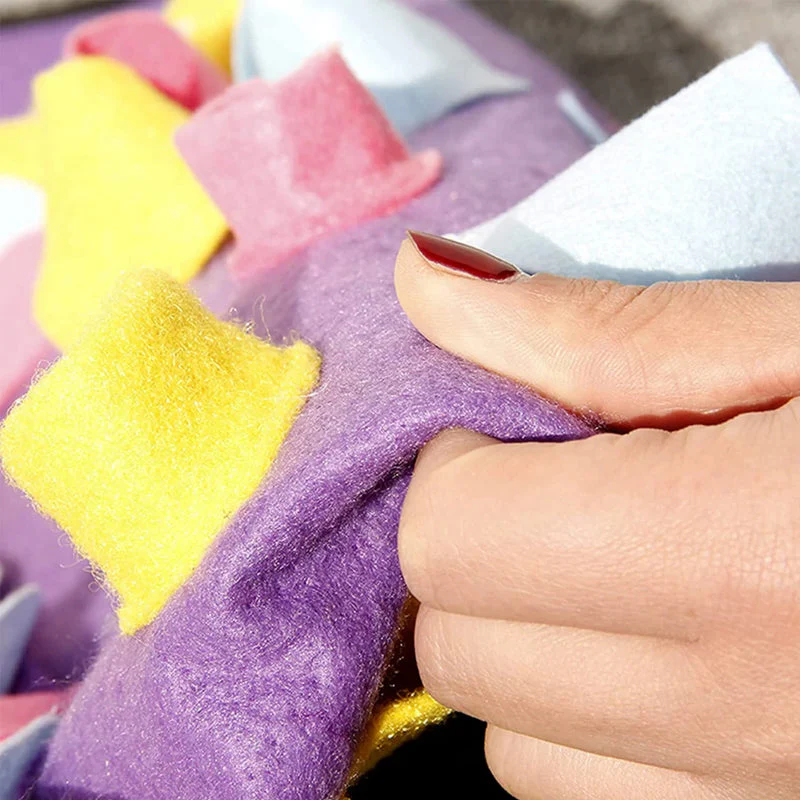 Wil je je hond op een speelse manier aanmoedigen? De Dog Sniffing Mat is een educatieve voermat voor honden, maar ook een geweldig puzzelspeelgoed dat de nieuwsgierigheid van uw hond prikkelt. Het pedagogische speelgoed wekt de interesse van de hond om te spelen en bevordert zijn natuurlijke foerageervermogen. Het stimuleert ook de neus en hersenen van uw hond door het zoeken naar voedsel in de natuur na te bootsen. De mat is antislip en dus volkomen veilig.