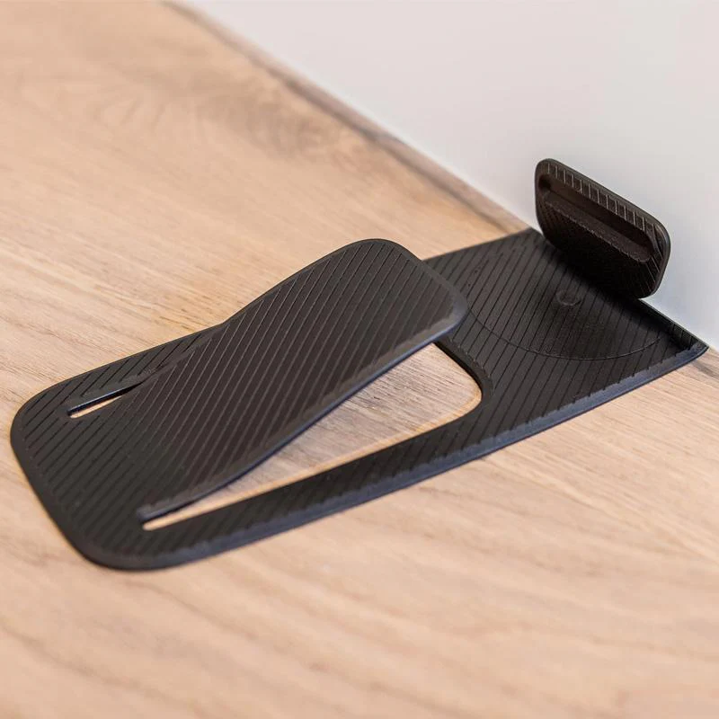 Deze deurstopper is stijlvol ontworpen om uw deur op de meest eenvoudige en functionele manier vast te houden. Het kan eenvoudig in enkele seconden op bijna elk oppervlak worden geïnstalleerd zonder te boren. Geen dichtslaande deuren, stoten op uw deurknop of brekende glazen deuren meer en u hoeft niet meer aan uw zware oude deurstopper te trekken.