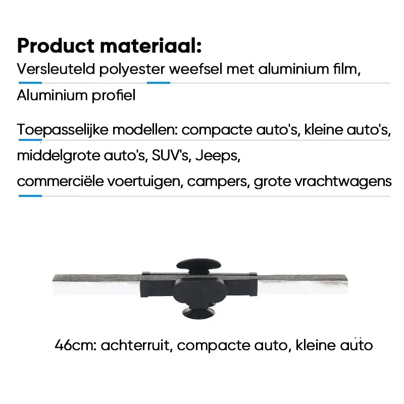 - Reflecterende aluminiumfolie, hoge schaduwefficiëntie, houdt de auto koel;