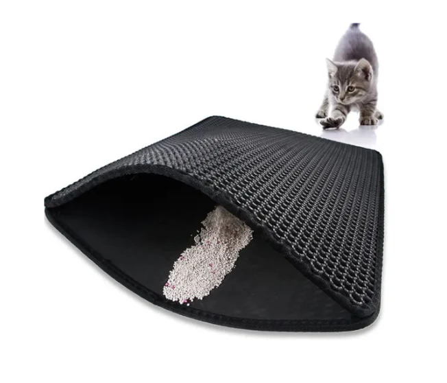 Met onze kattenbakmat zorg je ervoor dat grid en kattenbakvulling zich niet door je huis verspreiden. Als er overal gruis ligt door je lieve kat kan dat jou soms veel stress bezorgen. Met deze kattenbakmat kan je dit voorkomen en blijft je huis schoon. De mat is katvriendelijk en geeft zelfs een masserend gevoel! Ook is de mat waterdicht, dubbellaags en voorzien van een antislip onderkant zodat je kat lekker zijn ding kan doen.