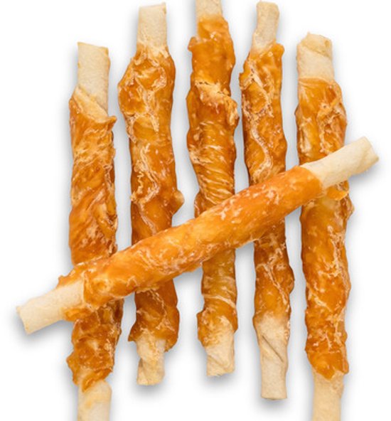 Deze kauwsnacks van 12 cm bevatten een kleine hoeveelheid vet en veel proteïne.