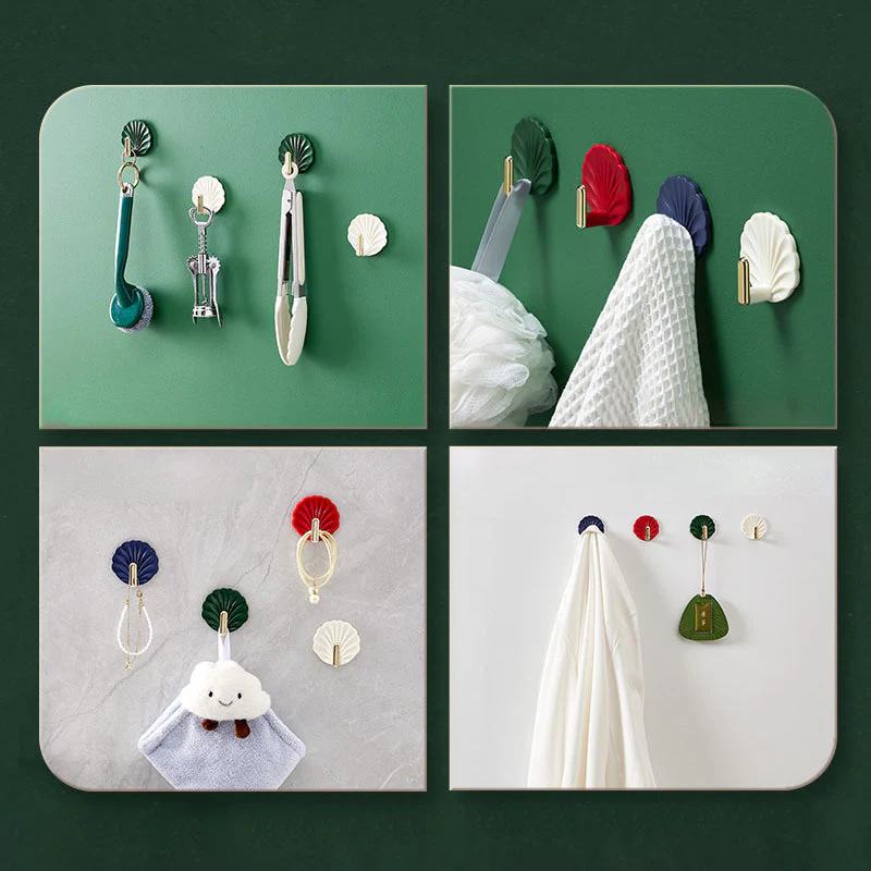 - Praktische haken: Shell-muurhaken zijn ontworpen met verlengde haken om uw sleutels, handdoeken, handtassen, jassen, jassen, baseballpetten, badjassen en meer veilig op te bergen.