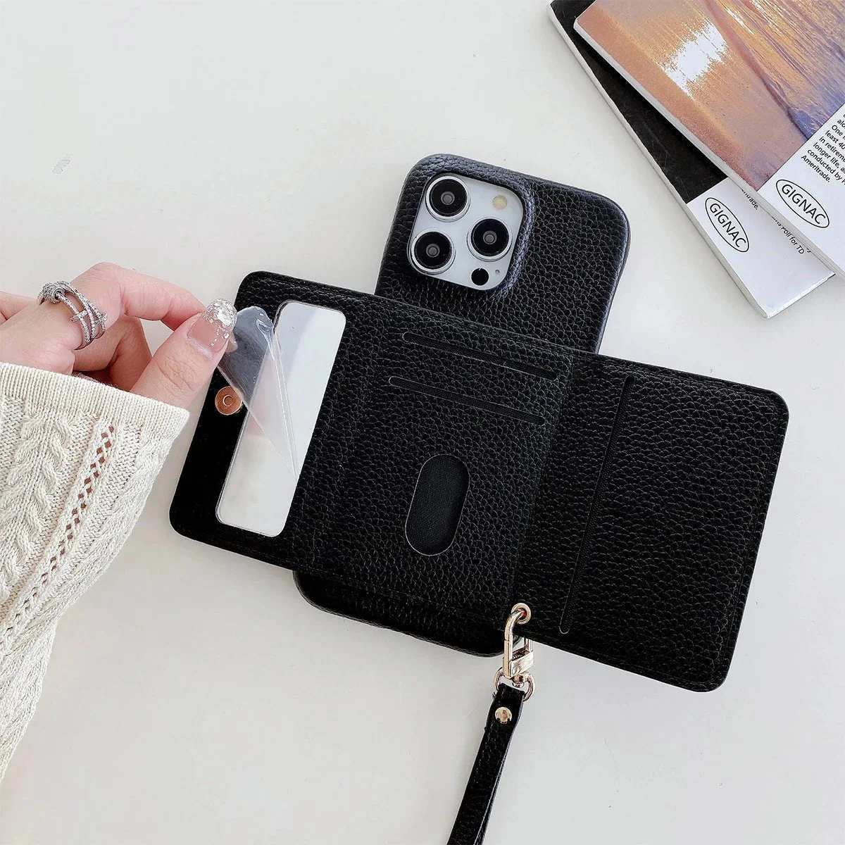 Geen losse pasjes of contant geld meer! De ingebouwde kaarthouder biedt voldoende ruimte voor creditcards, ID-kaarten of briefgeld – ideaal voor dagelijks gebruik of op reis.