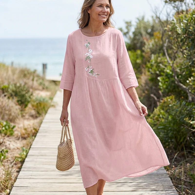 Inbegrepen: 1 Maya Casual Midi Jurk met kenmerkend borduurwerk