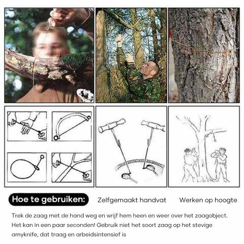 1. Trek de zaag gewoon met de hand uit elkaar, wrijf hem heen en weer over het snijobject, het kan in een paar seconden worden gedaan! Gebruik niet het soort zaag op het Zwitsers zakmes, het is traag en erg arbeidsintensief!