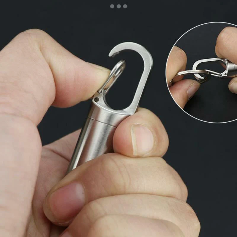 - Het is een pillendoosje op zak of een waterdichte opberger aan je sleutelbos.