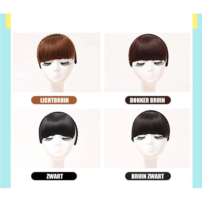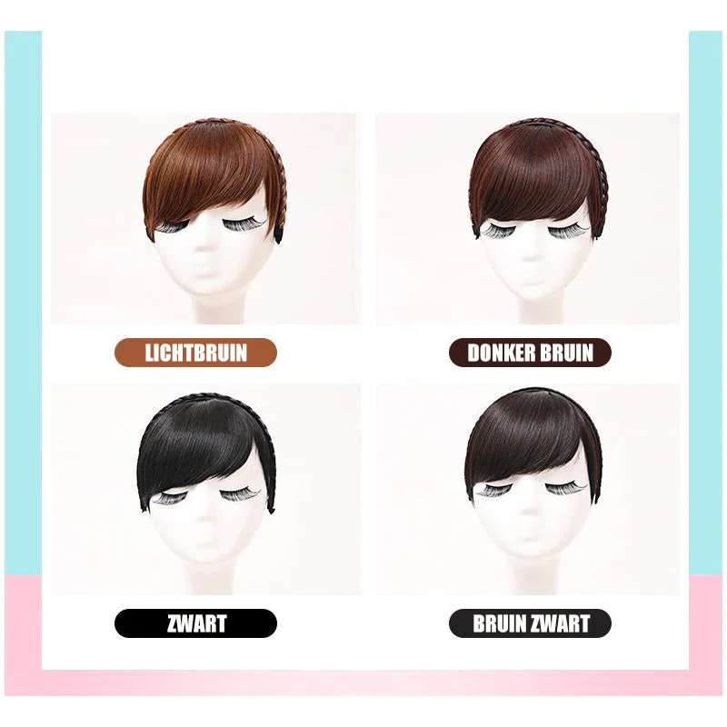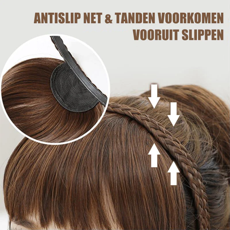 - Instant Hair Bangs: draag gewoon de hoofdband om een haarbang toe te voegen met een vlecht zonder kapsel.