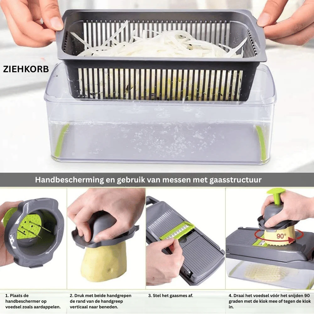 Transformeer je dagelijkse kookroutine met een tool die elke keer weer snelle, nauwkeurige en rommelvrije resultaten levert. Snijd, hak en rasp moeiteloos terwijl je waardevolle tijd en energie bespaart in de keuken. Geniet van een soepelere en prettigere kookervaring met perfecte sneden zonder gedoe van begin tot eind. 🔪✨