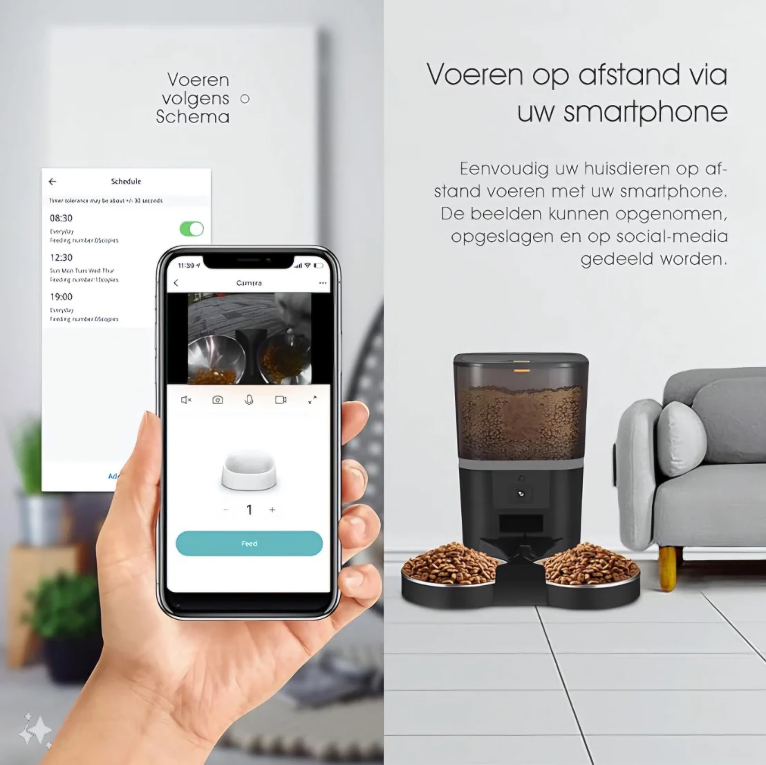 Geef je huisdieren de zorg die ze verdienen, waar je ook bent. Bestel nu de slimme voerbak voor katten en honden!