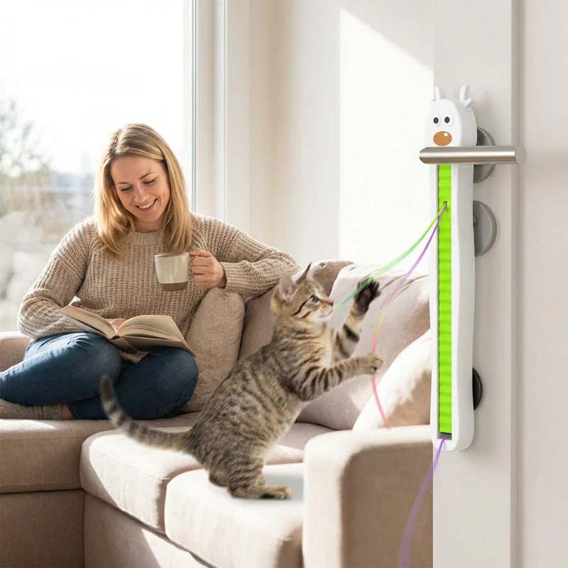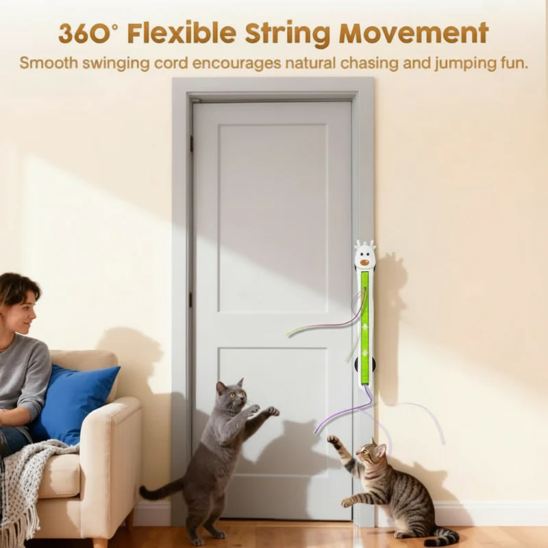 Maak kennis met WhiskerWhirl – de aan deur gemonteerde speelgenoot die de jachtinstincten van uw kat prikkelt met onweerstaanbare 360° bewegende string. Het slimme opvouwbare ontwerp en de USB-oplaadfunctie zorgen voor ononderbroken plezier zonder dat het tijd of ruimte kost.